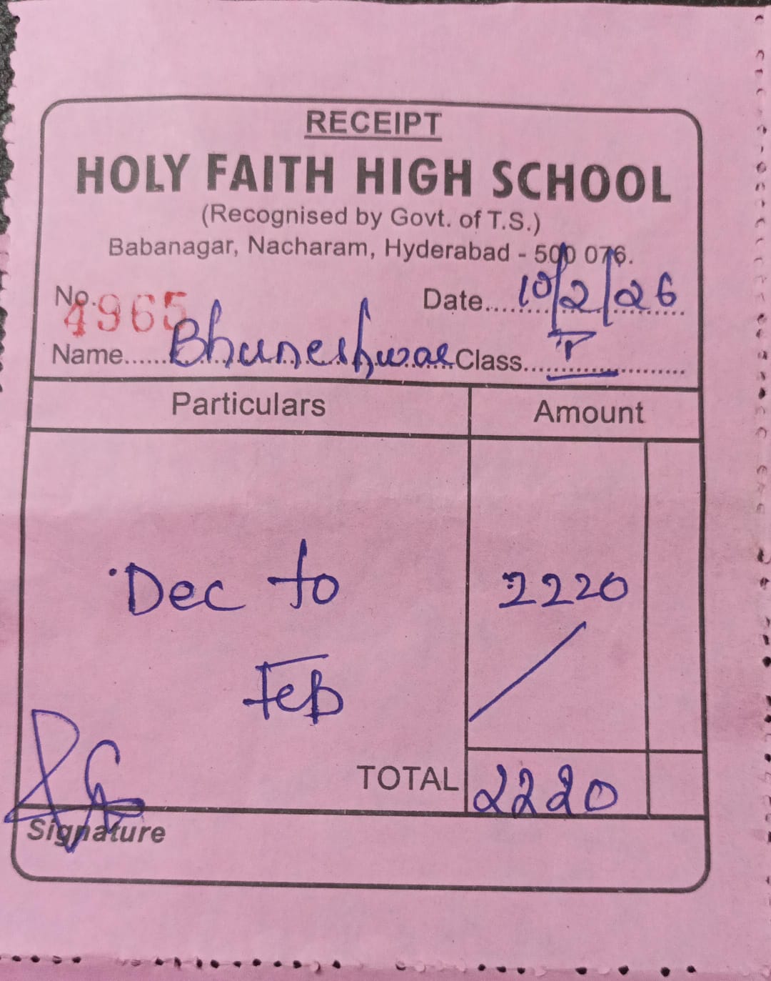 Houriya Begum is a student of 10th standard, at Holy Faith High School, Nacharam. She lives with her mother and siblings under the care of her maternal uncle. Her father struggled with alcohol addiction and eventually left the family, leaving them without emotional or financial support. Her mother is currently unable to work due to personal and health reasons.